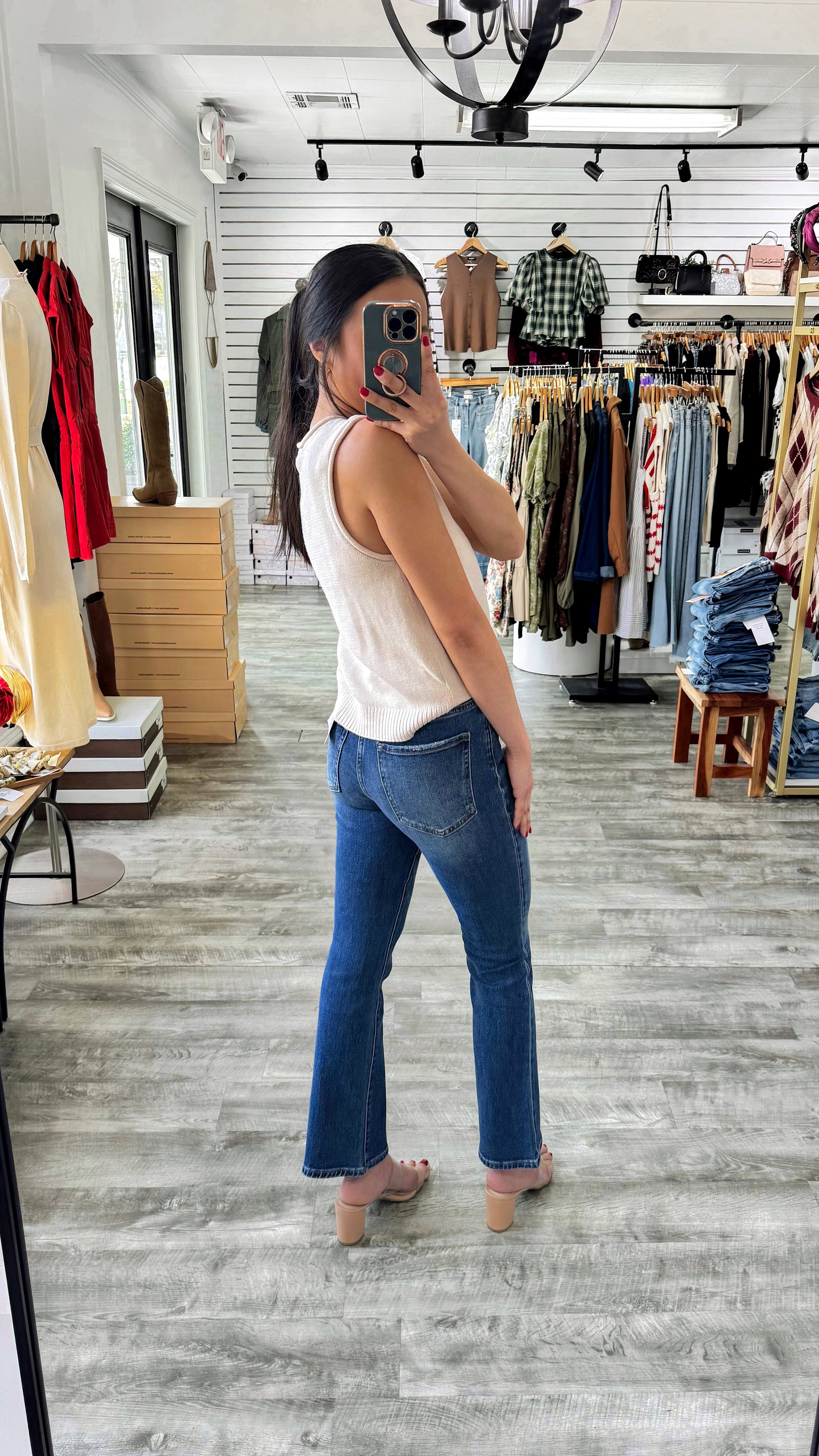 Four pockets, grinding at pocket opening, high rise waist, zipper fly, natural washing effect, finished hem