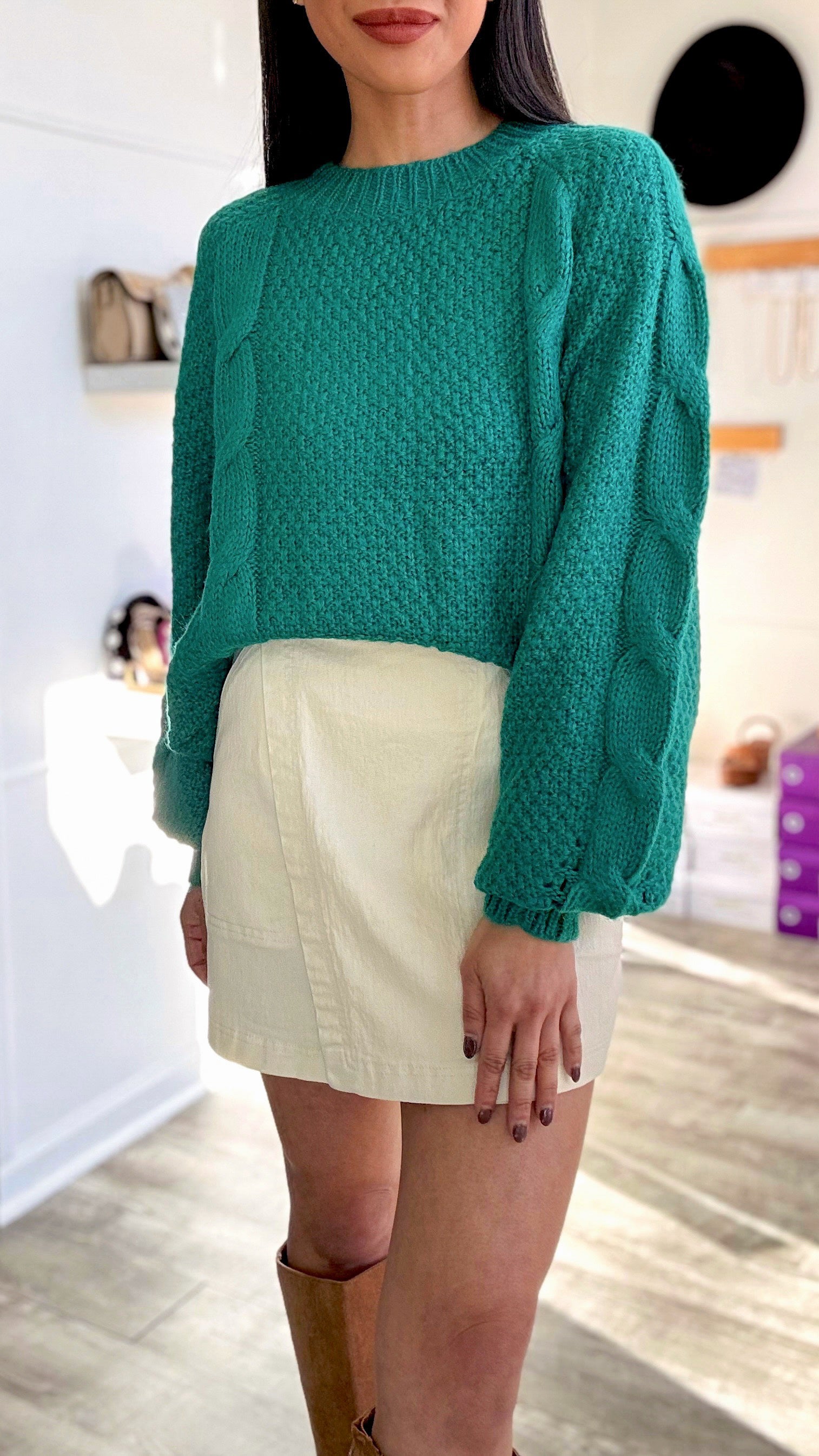Wool blend thick gauge cable knit pullover sweater with slight two toned threading